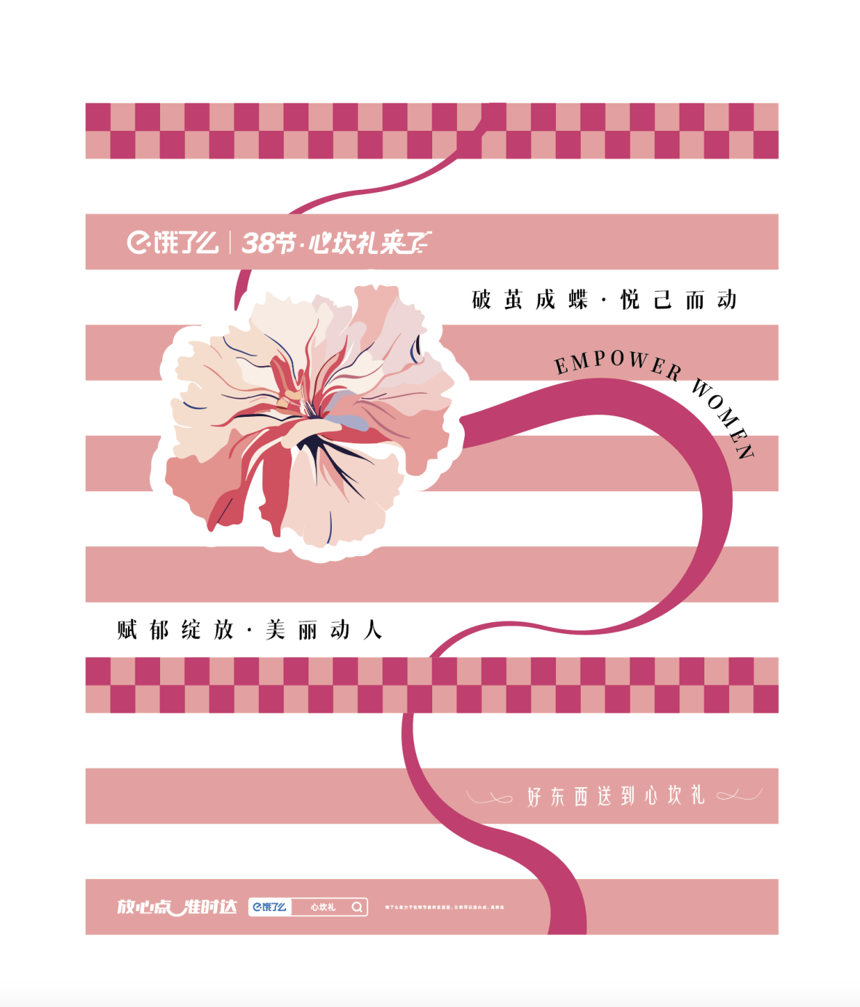 借助巳字与e的形似概念,打造契合的活动内容在安徽一起 买饿了么心坎好礼。并设立女神好巳屋,设计新玩法:关注指定饿了么店铺,获得参与机会打卡活动赢取好巳好礼。