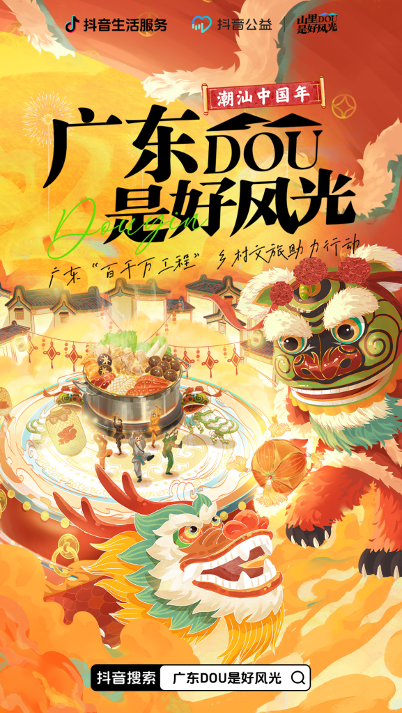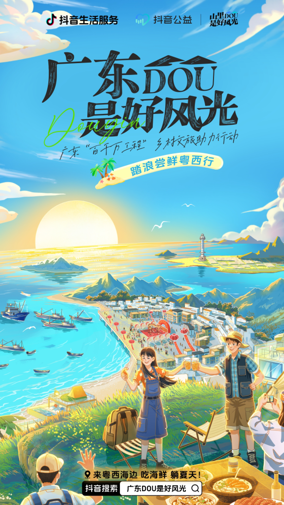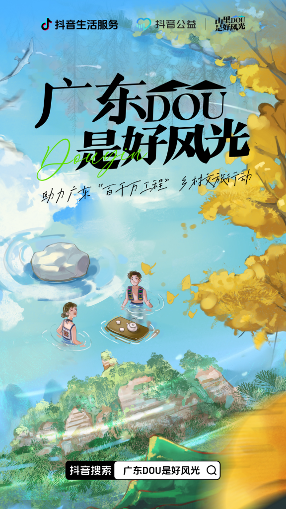 抖音生活服务与抖音公益联合项目,探索全国各地乡村风光,通过画面展现当地风土人情与美食美景,画面通过创意构图巧妙融合各式本土元素,展现中国大美山河。